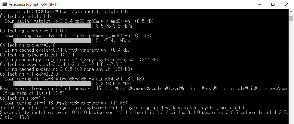 아래와 같이 matplolib이 이미 설치되어 있음을 알 수 있다.
