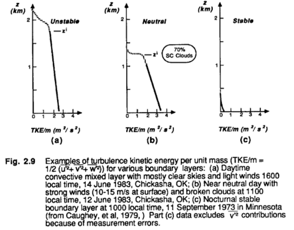 - 밤에는 shear 만이 난류를 생성할 수 있음.