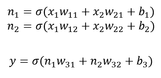 먼저 각 노드 n1, n2를 구하고, 최종 y 출력값을 계산한다.