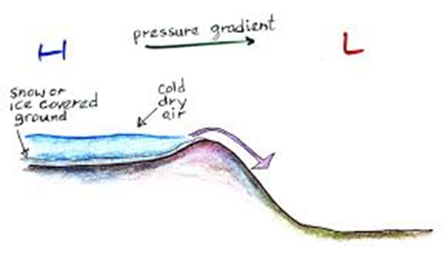 국지기상의 발달과 소멸에 큰 영향을 미침. 저/고기압 지역 내의 하층 수렴/발산에 영향을 미침